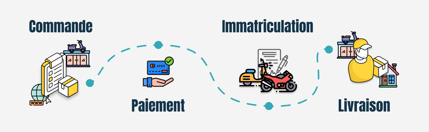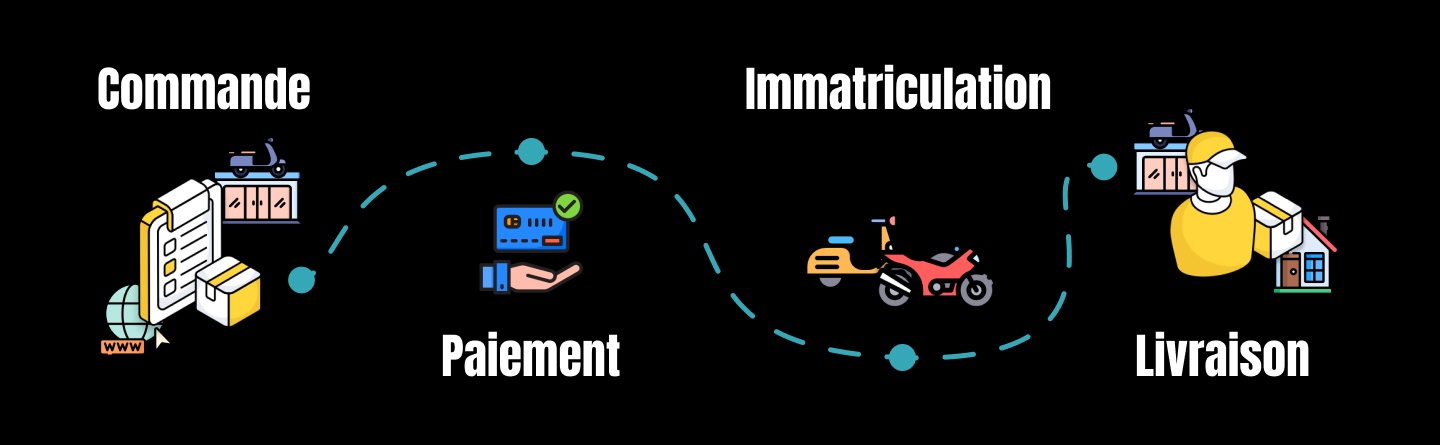 Le processus chez easy-Watts comprend la commande en ligne ou en magasin, suivie du paiement (échelonné ou non), puis de l'immatriculation après réception des documents requis. La livraison peut se faire à domicile, chez un revendeur ou à l'entrepôt, une fois le véhicule immatriculé et payé.